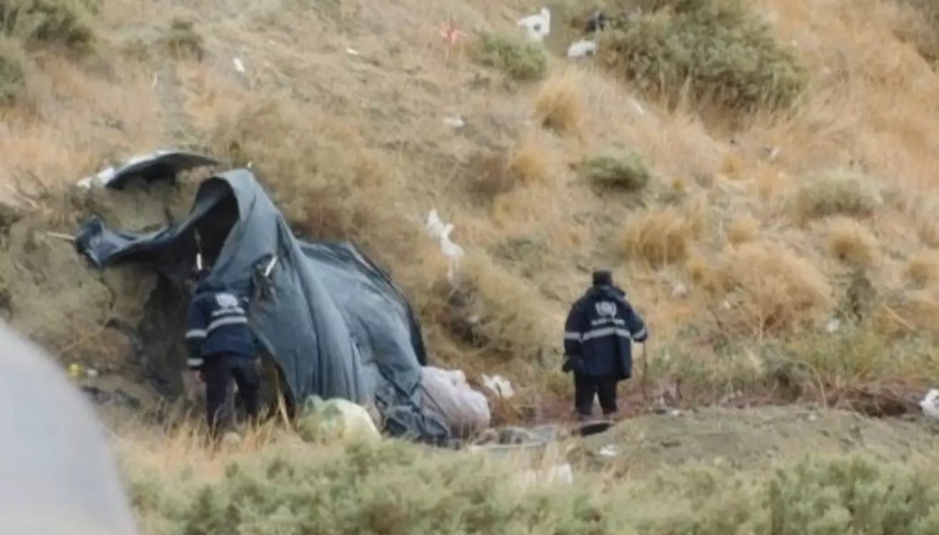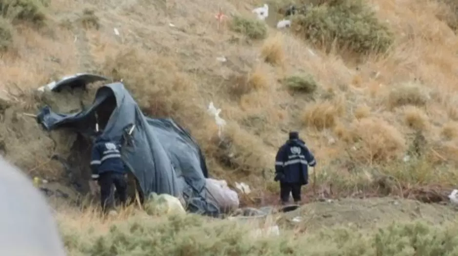 Efectivos de la Policía del Chubut debieron armar una protección precaria para resguardarse del clima mientras cumplen turnos extendidos en la zona afectada por el deslizamiento del Cerro Hermitte.