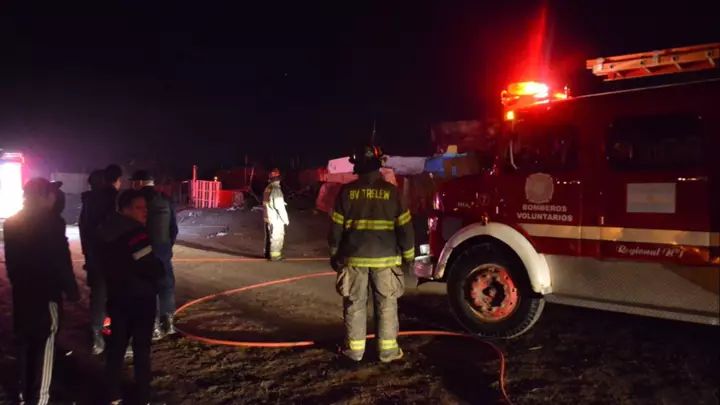 Una precaria vivienda levantada en un asentamiento ubicado detrás de una pesquera, frente al barrio Planta de Gas de Trelew, se incendió en momentos en que sus jóvenes moradores se encontraban ausentes.