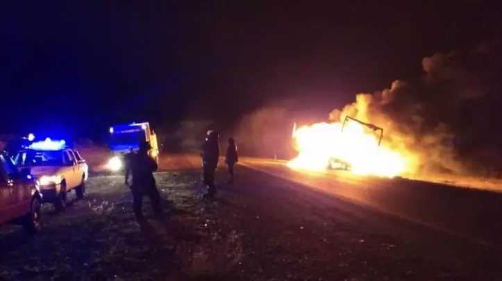 Todavía no esta estaclarecido como el camión terminó incendiándose. El siniestro sucedió esta madrugada en la Ruta Nacional N°3, en cercanía a Garayalde. Trabajaron dotaciones de Bomberos de Comodoro Rivadavia y Camarones.