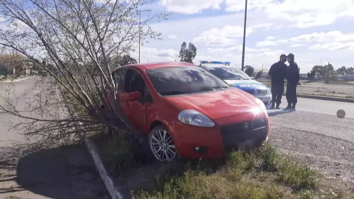 Un vehículo marca Fiat, con dos ocupantes a bordo, impactó esta mañana contra un árbol en el ingreso a la ciudad de Rawson, sobre el puente Néstor Kirchner.