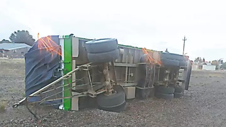 Si bien conducía a baja velocidad se produjo el vuelco del semi sobre su lado derecho, hacia el lado exterior de la rotonda, en tanto que la cabina quedó en posición normal. En ese momento el tránsito fue disminuido pero no interrumpido. El conductor es un hombre de 33 años que no resultó herido, ya que solo volcó el acoplado y no la cabina.
