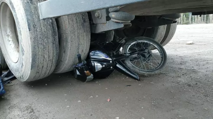La moto terminó debajo del acoplado y su conductor tirado a un costado del pesado rodado. Fue un hecho que pudo haber tenido un dramático resultado.