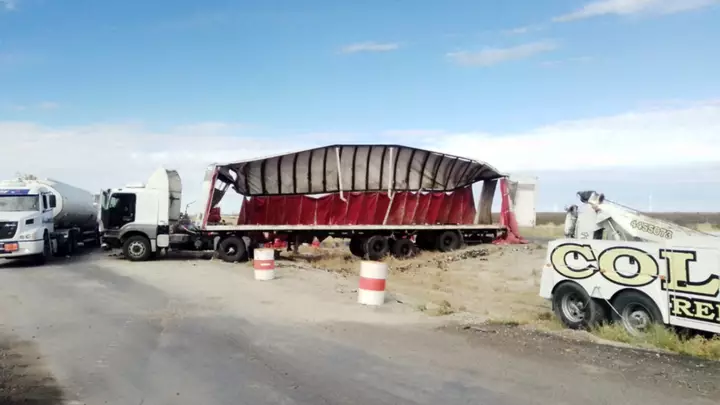 El sujeto, de 45 años, se dirigía desde Puerto Madryn a Trelew y, al cerrar los ojos, golpeó con unos barriles que señalan el desvío, lo que desencadenó en el siniestro. El transporte tenía una carga de envases vacíos de gaseosas y cervezas.