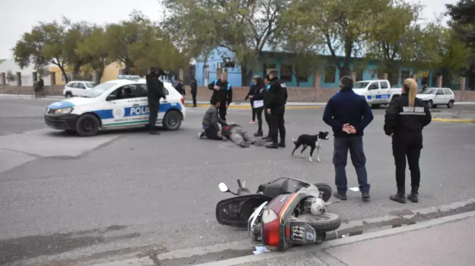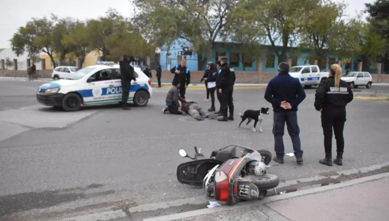 El hombre cayó del vehículo tras perder el control del mismo por no chocar contra un auto, según refirió a la policía la conductora de este último rodado. El hecho se registró minutos antes de las doce del mediodía en la intersección de Lezana y Lewis Jones y quien terminó siendo trasladado al hospital, el conductor de la moto, es un hombre de 77 años.