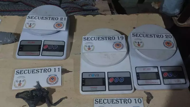 Confiscaron, además de la droga, balanzas, elementos de corte del estupefacientes, recortes de nylon, celulares dispositivos de almacenamiento varios y una tumbera.