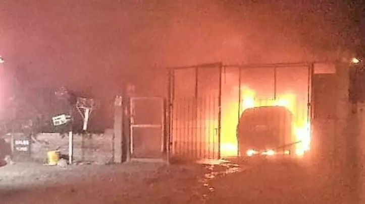 El vehículo que se quemó es un Chevrolet Corsa que estaba envuelto en llamas a un costado de la vivienda que se prendía fuego cuando la Policía se hizo presente en lugar.
