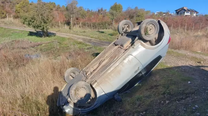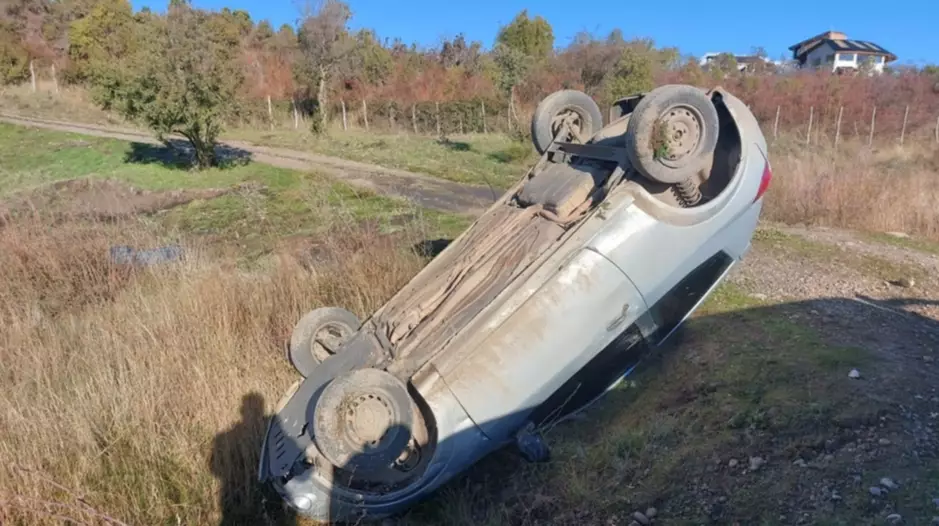 AUTO CON TRES OCUPANTES VOLCO FRENTE A LOS VIÑEDOS DE TREVELIN