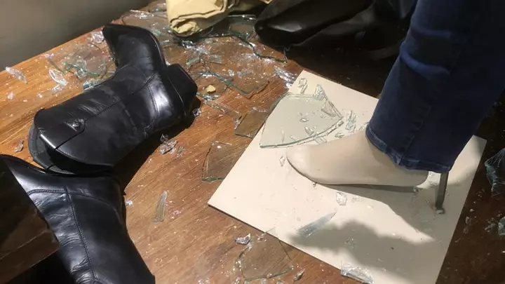 Un transeúnte dio aviso a la policía luego de ver la rotura de un cristal del edificio mientras caminaba por la avenida. El mismo no divisó a ninguna persona salir del interior de la tienda.