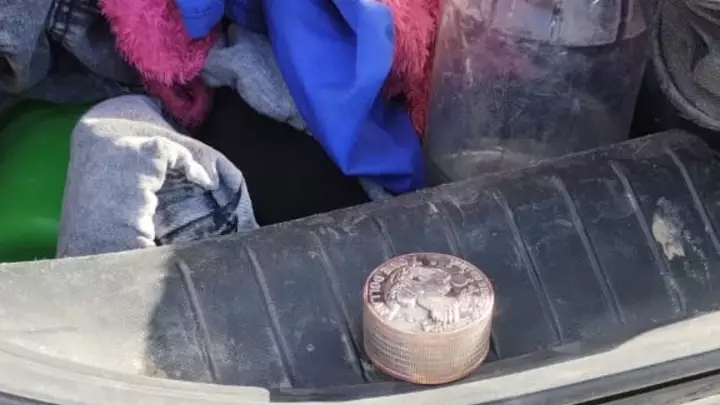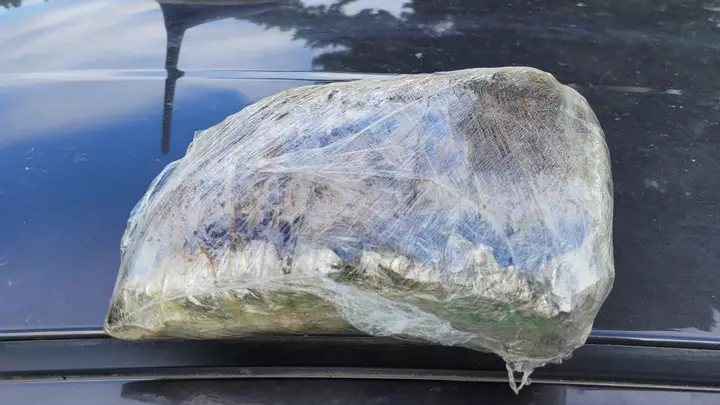 Al seguir con la búsqueda, en el baúl se halló un paquete envuelto en papel film enmascarado con café para que el perro antidrogas no pueda detectarlo. Al abrir el paquete se constató que este tenía marihuana con un peso cercano a los 400 gramos.