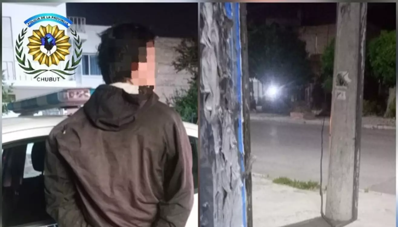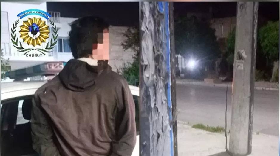 Este martes, cerca de las 05:00, la policía de Trelew realizaba un patrullaje por calle Italia y Alem y observó a un hombre que intentaba llevarse cables del tendido eléctrico.