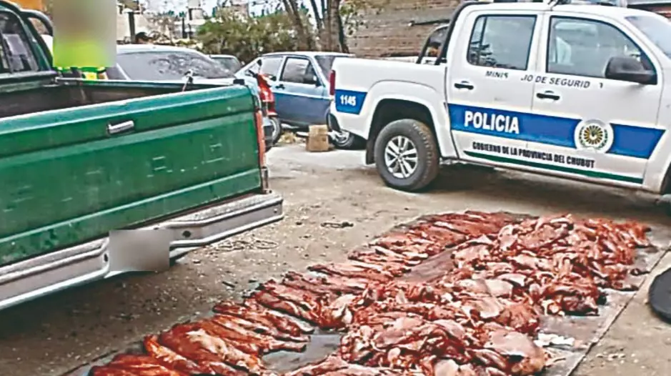 Durante tareas preventivas en la zona de chacras, el personal policial observó una camioneta Ford F100 verde que circulaba hacia Trelew con varios bultos en la caja y manchas presumiblemente hemáticas en su tapa. Ante esta situación, los agentes hicieron detener la marcha del vehículo para identificar al conductor.