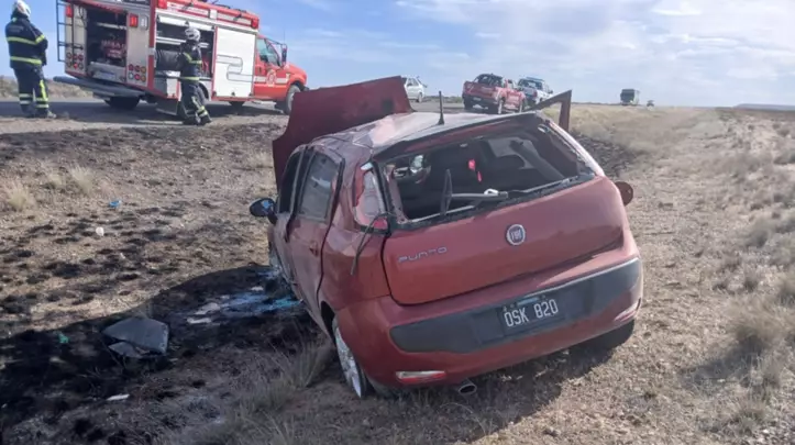 El caso del automóvil que volcó ocurrió en ese sector de la ruta 25 la tarde del domingo. El coche es un Fiat Punto que también venía desde Gaiman al mando de un jubilado de 66 años al momento en que repentinamente se fue a la banquina y ahí volcó dando al menos un tumbo, en un hecho por el que se inició un incendio en la zona del motor; que terminó siendo sofocado por la patrulla policial que llegó a intervenir en el episodio.