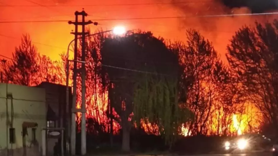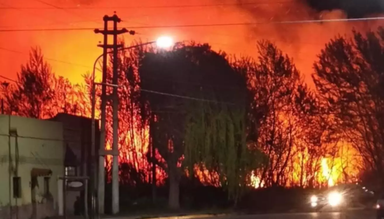 Un dimensional incendio se desató alrededor de las 22 del viernes en el antiguo parque temático “El Desafío”, en Gaiman.