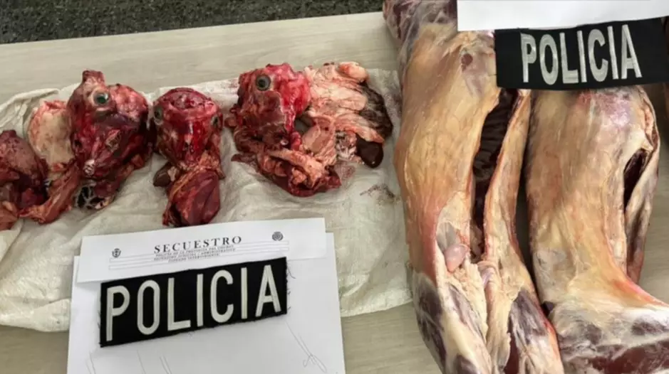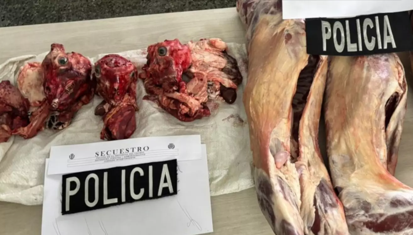 En la dependencia policial, uno de los hombres sindicados entregó de manera libre y voluntaria tres caprinos faenados, que fueron secuestrados por el personal interviniente.