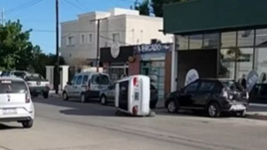 Un auto volcó tras provocar ayer una colisión en cadena de otros dos coches que se hallaban estacionados afuera de una concesionaria, luego de chocar a uno de ellos, y su conductor fue trasladado al hospital acusando dolores en distintas partes del cuerpo. A la policía le dijeron en el lugar que otro vehículo que se había ido lo «cerró». Fue cerca de la Pista Municipal de Atletismo, al sur de Trelew y la víctima se encuentra bien.