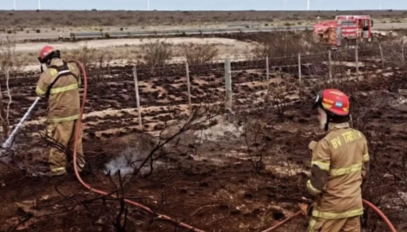 Sofocan incendio de pastos camino a Madryn que se habría desatado por una colilla de cigarrillo