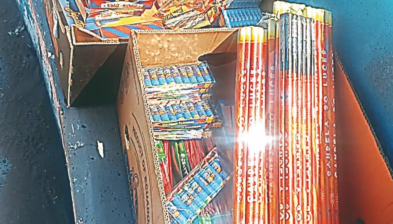 Según se informó de manera oficial, el procedimiento se llevó a cabo ayer después de las 15 y lo que se secuestró en el lugar fueron 4 cajas de 6 unidades de «Morteritos Explosivos». 2 de «Morteritos Estruendosos». 6 cajas de 10 unidades de «Júpiter King Kong». 7 bolsas de 5 unidades de «Tumba Rancho». 7 cajas de «Fosforito» de 139 unidades en total. 1 caja de 100 unidades de «Chasqui bum». 20 cañitas con tiro. 2 cajas de 40 unidades de petardos. 11, de 10 unidades cada una, de «Coloured Flowers». 1 caja de 200 unidades de «Estrellitas». 1 de 6 unidades de «Morteritos». 1 caja de 24 unidades de «Huevos del Dragón». Y 56 candelas de 30 luces.