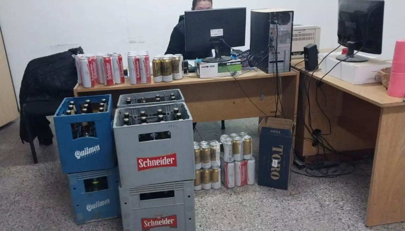En ese orden, según lo que informó la propia policía en una gacetilla de prensa, se incautaron 40 latas de cerveza, 26 botellas, 2 latas de Dr. Lemon, 4 cajas de vino tinto. 3 botellas de Dr. Lemon, de litro. Un pack de latas de cerveza de 710 centímetros cúbicos, y varias botellas vacías de cerveza, de litro.