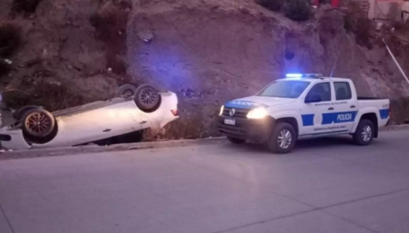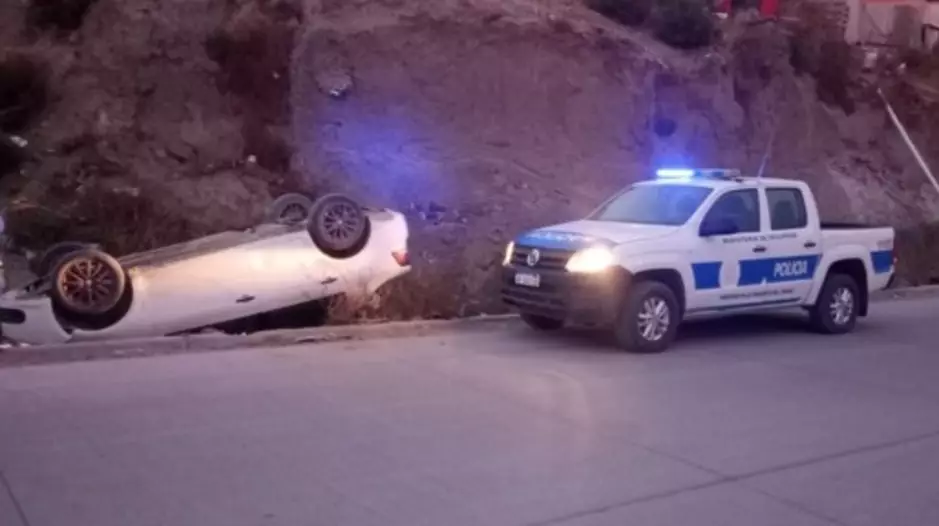 En la mañana de ayer, alrededor de las 6:00 horas, un Renault Voyage se desbarrancó y volcó en la intersección de Julio Argentino Cabezas y Ramón Colivoro, en Comodoro Rivadavia.