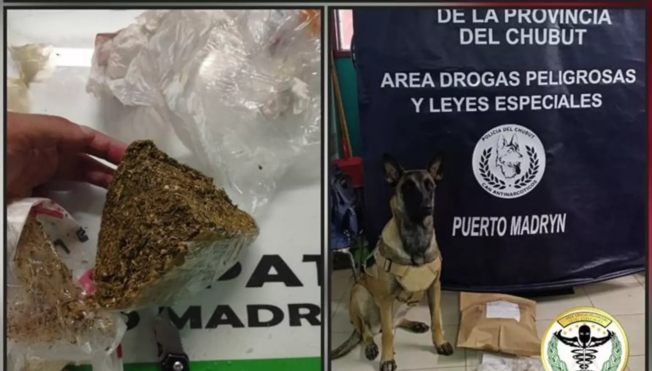 La Policía de Chubut incautó cocaína y marihuana en una encomienda procedente del norte del país. El hallazgo fue realizado en la terminal portuaria durante un control operativo.