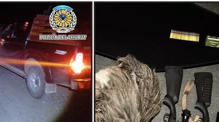 Al solicitar la documentación correspondiente, los ocupantes exhibieron dos carabinas de repetición marca SAVAGE, modelo AXIS, calibre .223 Remington, con papeles en regla. Sin embargo, al inspeccionar la caja del vehículo, los uniformados hallaron el cuerpo sin vida de un choique, que presentaba un orificio de proyectil a la altura del pecho.