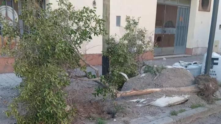 No todo terminó allí, ya que por la fuerza del impactó arrancó de raíz un árbol de unos 3 metros de alto de la especie ficus de unos pocos años que estaba plantado en la vereda de una panadería que, desde hace muchos años, funciona en esa esquina.