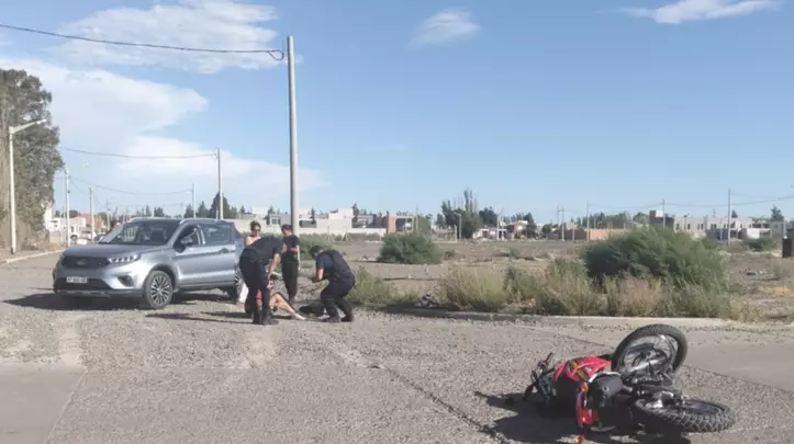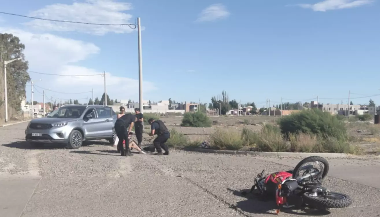 Un motociclista chocó con una camioneta y por el impacto sufrió golpes en distintas partes, debiendo ser trasladado en ambulancia hacia el hospital. El hecho sucedió en la tarde de hoy en la zona sur de la ciudad.