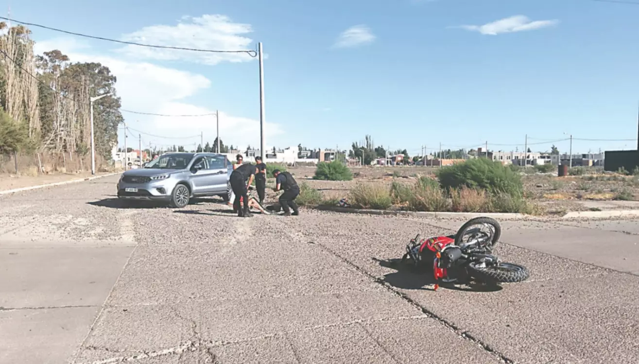 Un motociclista chocó con una camioneta y por el impacto sufrió golpes en distintas partes del cuerpo, debiendo ser trasladado en ambulancia hacia el hospital. Fue ayer a la tarde en una intersección de la zona sur de Trelew.