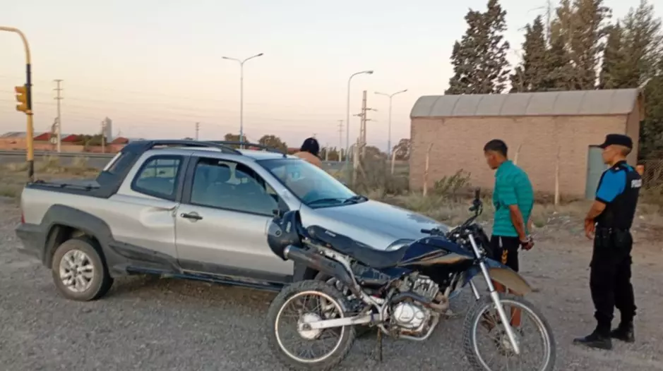 Fue la noche de este viernes, alrededor de las 21, en las inmediaciones de 26 de Noviembre y avenida Ciudad de La Plata, frente al parque industrial de la ciudad. Allí se produjo una colisión entre una motocicleta «Keller», de mediana cilindrada que había sido sustraída en agosto del año pasado, del frente del domicilio de su propietario; en la zona noreste de Trelew y una Fiat Strada cuyo conductor salio ileso del siniestro.