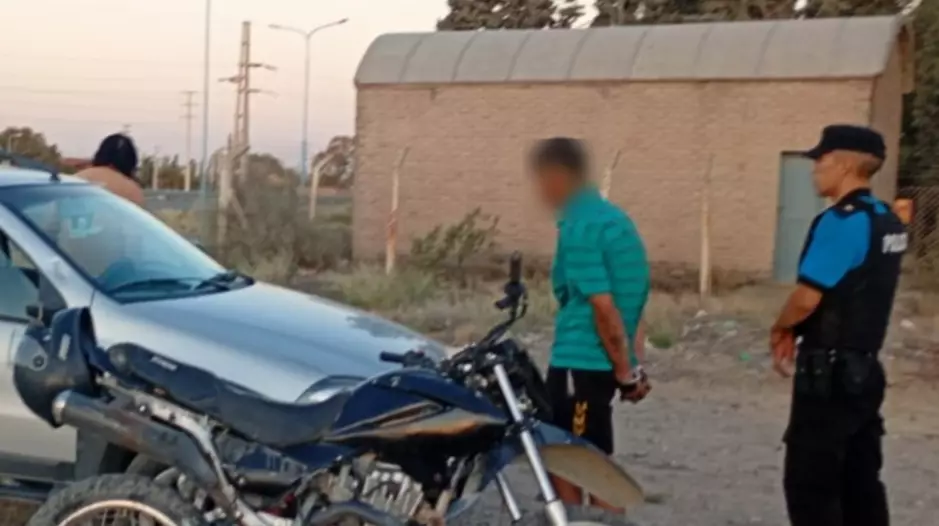 Un siniestro vial ocurrido este viernes por la tarde en la ciudad de Trelew terminó con un motociclista detenido, luego de colisionar contra un automóvil, intentar darse a la fuga y comprobarse que el rodado en el que circulaba tenía pedido de secuestro por hurto.