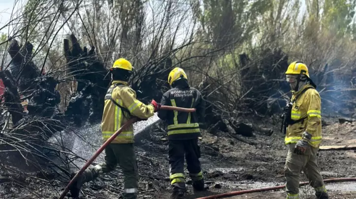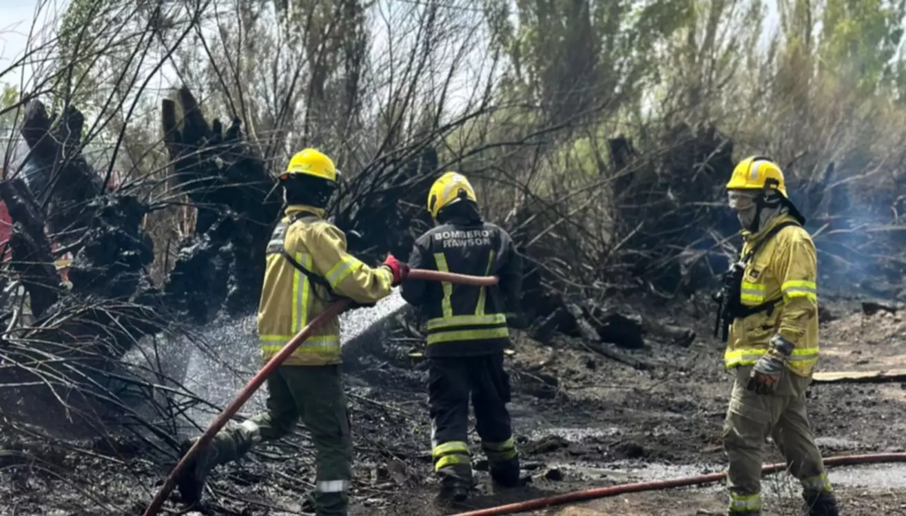 Intervención de Bomberos Voluntarios por incendio de pastizales en zona rural de Rawson