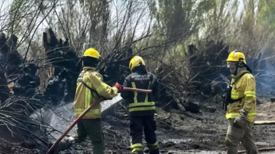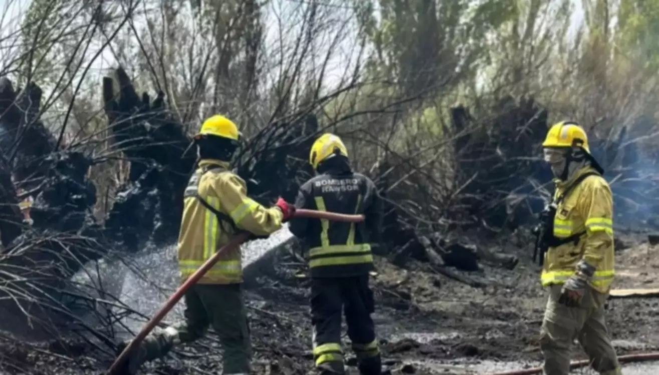 Incendio de pastizales y tamariscos en zona rural de Rawson