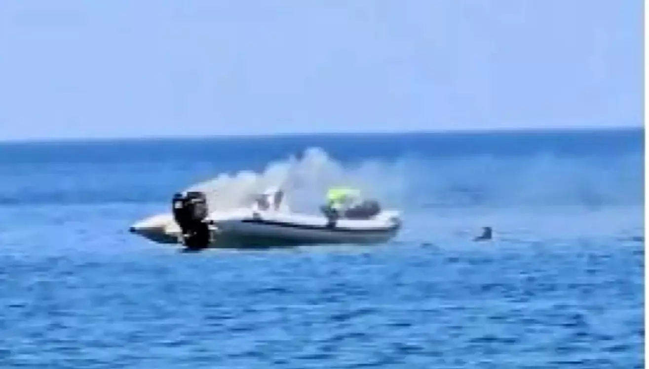 Con maniobras rápidas y precisas, realizó giros en “U” para salpicar agua sobre el motor de la lancha, logrando sofocar las llamas antes de que el fuego se expandiera.