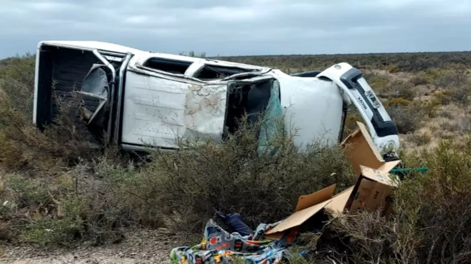 A unos 25 Kilometrso de la ciudad de Trelew en dirección sur, una camioneta Toyota Hilux termino volcada a a vera de la Ruta Nº3.