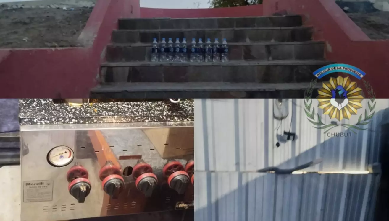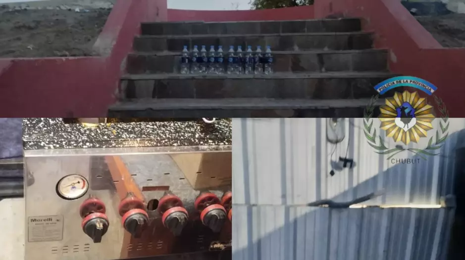 En una escalera ubicada detrás del comercio se hallaron diez botellas de agua. El damnificado manifestó que dichas botellas habían sido dejadas previamente en un escenario, por lo que se presume que también fueron sustraídas por los involucrados.