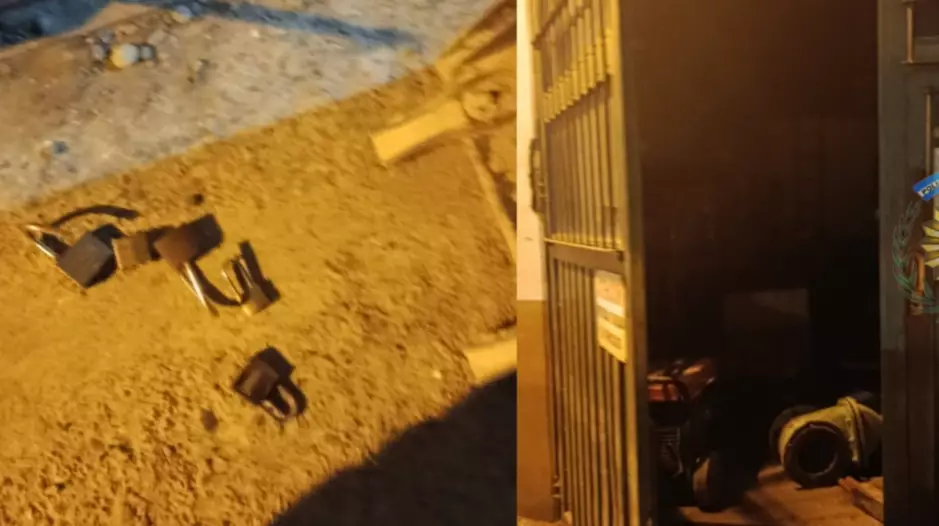 Al llegar, el personal policial constató junto al denunciante y un testigo que cinco candados estaban dañados en el suelo, frente al portón de ingreso, el cual presentaba sus puertas semiabiertas. Al inspeccionar el galpón, observaron daños en la puerta de acceso a la cocina y detectaron a un sujeto escondido entre neumáticos, con una barreta en la mano.