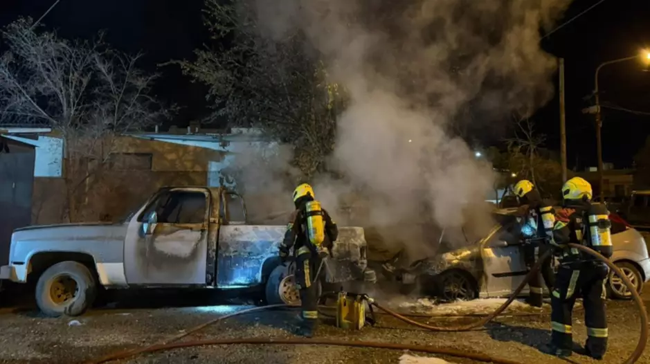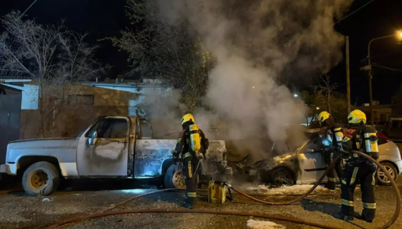 Bomberos intervinieron en el incendio de dos vehículos en Rawson