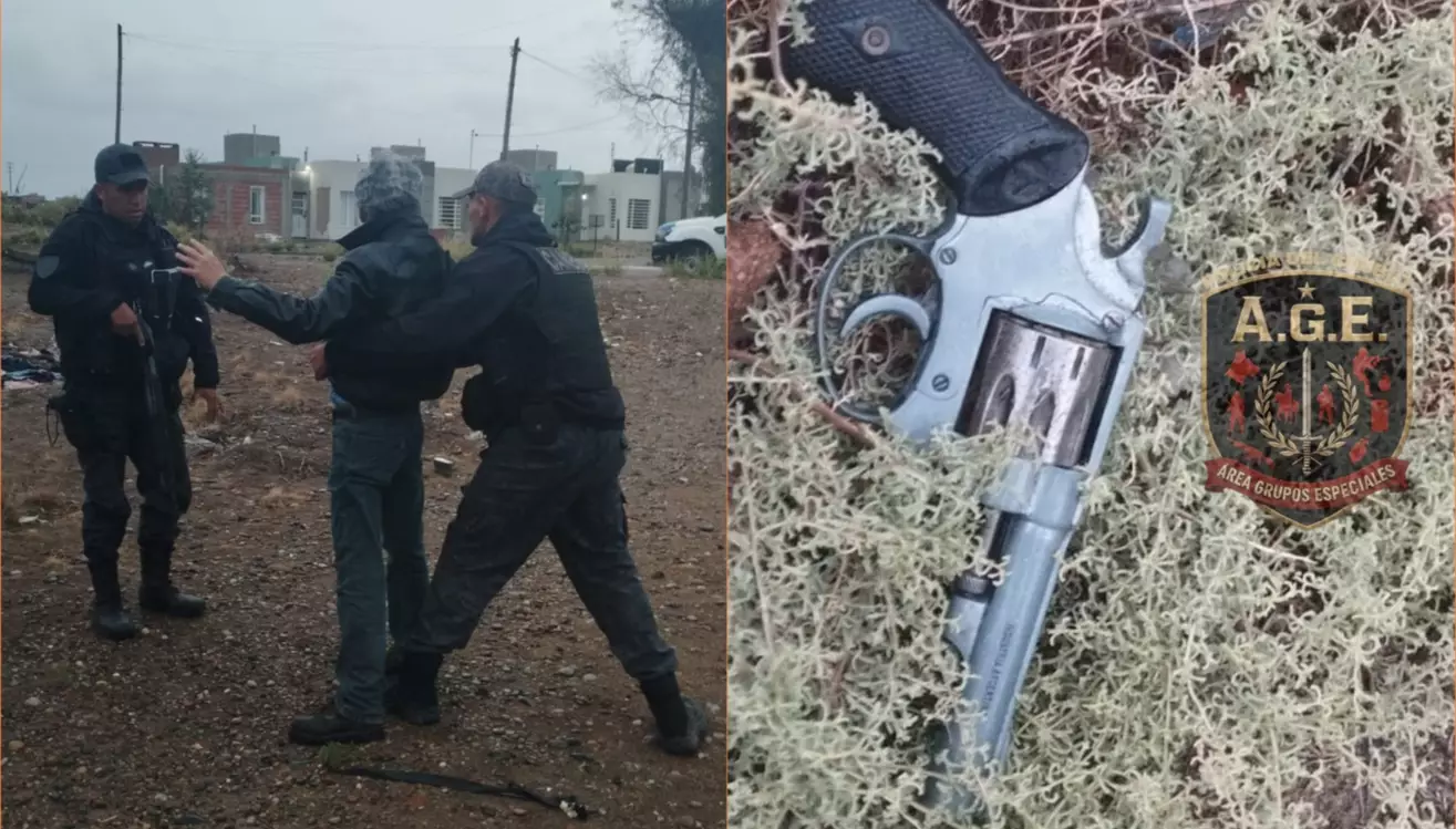 El operativo fue realizado por personal de la División Canes luego de un llamado de alerta. El hombre, que discutió con su pareja, llevaba un revólver calibre .22 con municiones en su poder.
