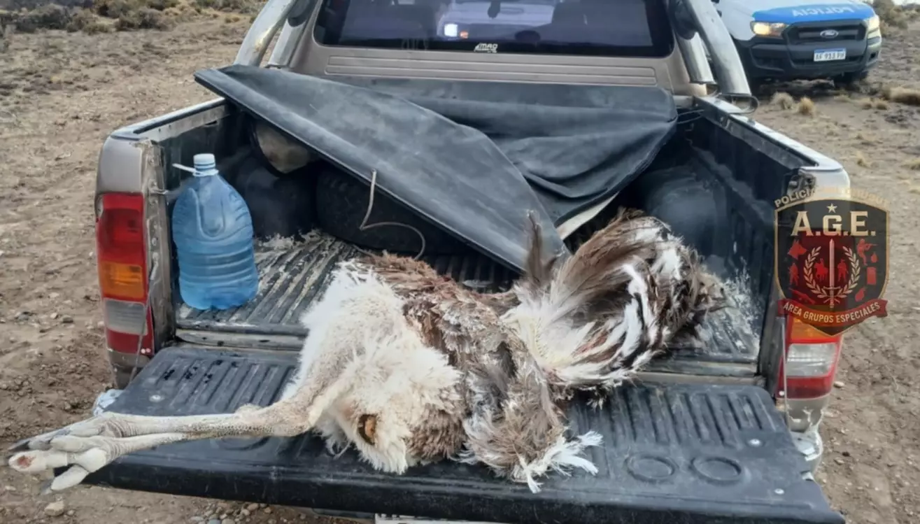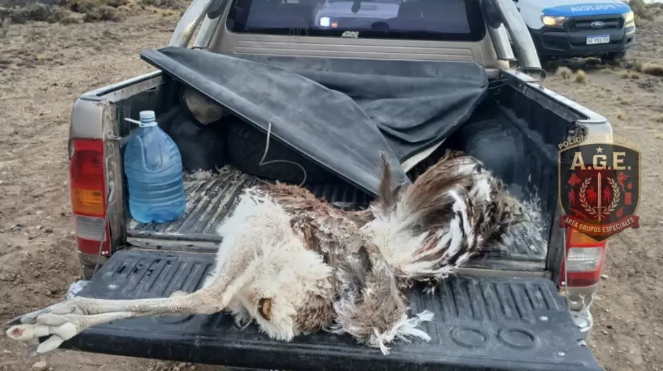 Al arribar al lugar, los agentes constataron que en la caja de una camioneta Toyota Hilux se transportaba un ejemplar de choique, especie protegida y en peligro de extinción.
