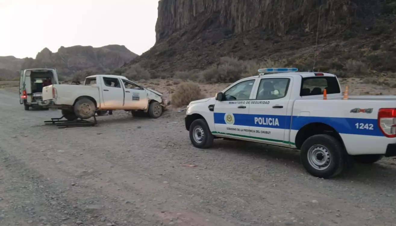 Dos personas resultaron gravemente heridas tras el vuelco de una camioneta tipo “taxi flet” ocurrido a unos 60 kilómetros al oeste de Las Plumas. Una mujer fue despedida del vehículo durante el accidente y, junto al conductor, fue trasladada en estado delicado al hospital de Trelew, mientras que el tercer ocupante sufrió lesiones leves.