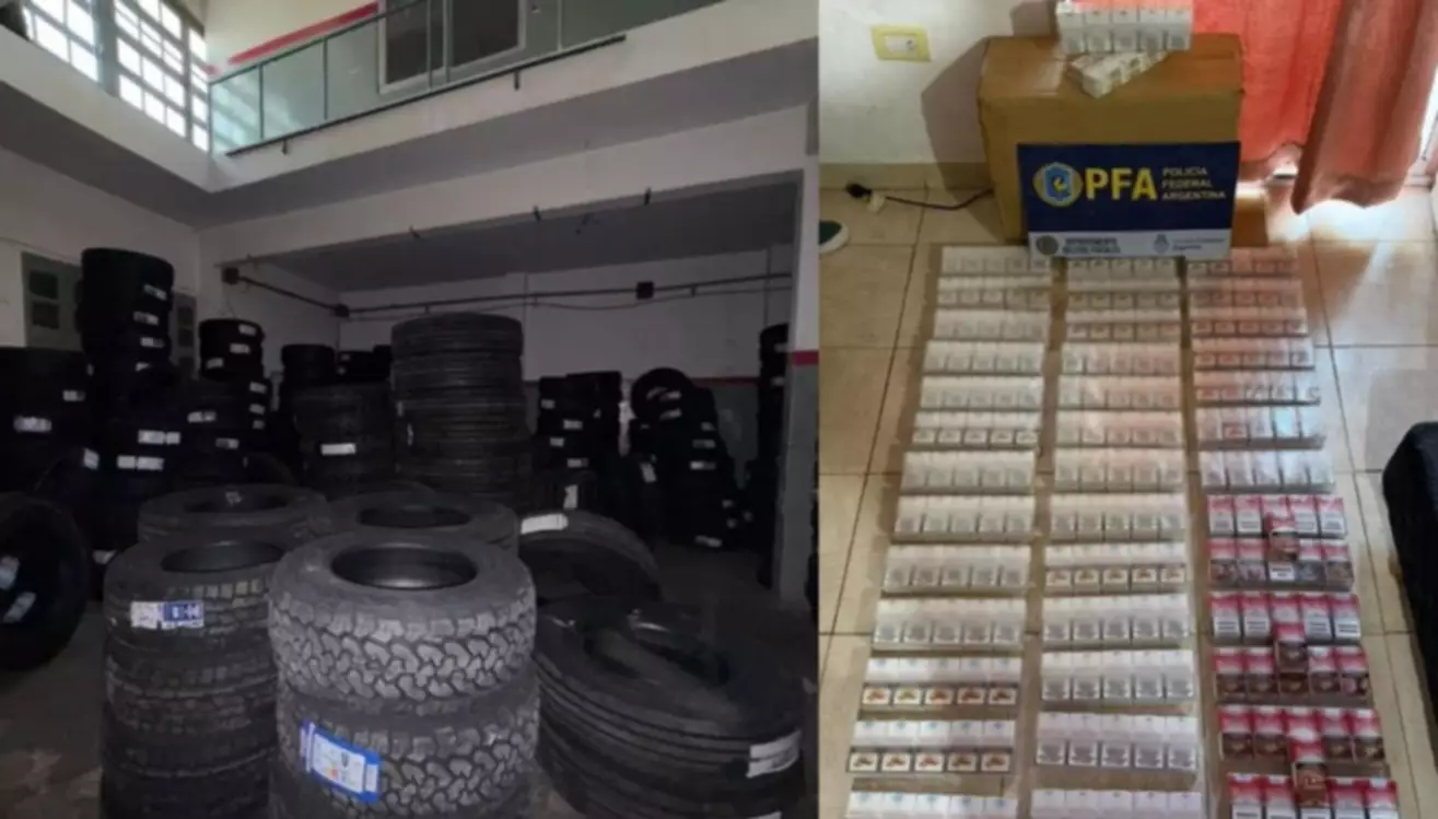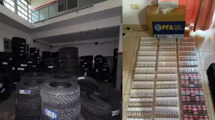 Uno de los puntos centrales del operativo fue un depósito perteneciente a una empresa de paquetería ubicado en Pablo Nogués, provincia de Buenos Aires, donde se dispuso el “congelamiento” de envíos bajo investigación. En ese lugar, los agentes inspeccionaron encomiendas y hallaron neumáticos de alto valor, electrodomésticos y grandes cantidades de cigarrillos de origen extranjero.