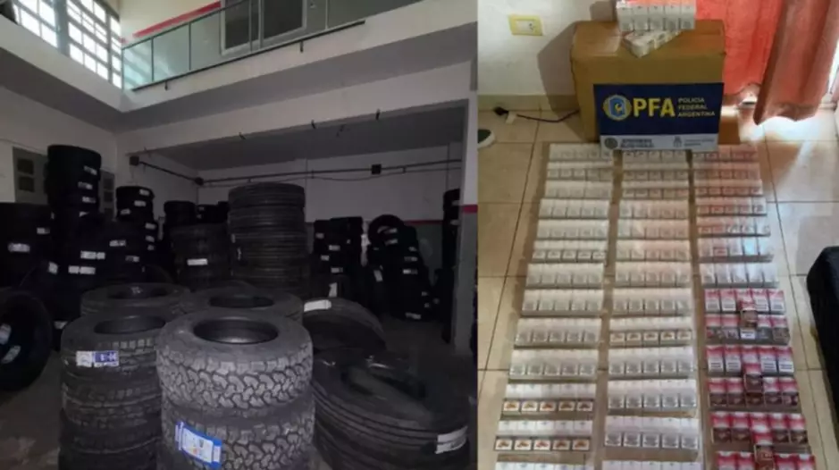 Durante los procedimientos, los efectivos federales incautaron más de 1.200 neumáticos de origen extranjero, 650 juguetes, 151 artículos de electrónica e indumentaria, 214 perfumes, 110 mochilas, 120 alfombras y 90 termos. También secuestraron 23 celulares de alta gama, notebooks y tablets, más de 2.000 atados de cigarrillos, dinero en efectivo por un total de 10.400.000 pesos y 400 dólares, además de documentación relevante para la causa.