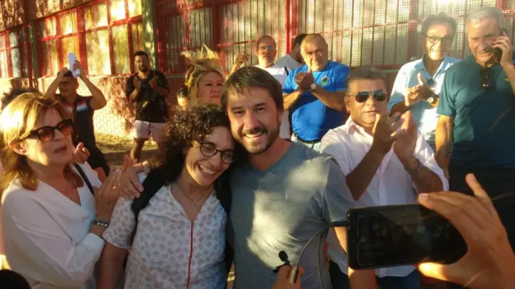 En el búnker de Gerardo Merino y en las afueras de la Escuela N° 751 hubo festejos por los resultados provisorios que lo aventajan, ya sin posibilidades de revertir para Federico Massoni, en la interna cerrada de Juntos por el Cambio en Trelew.