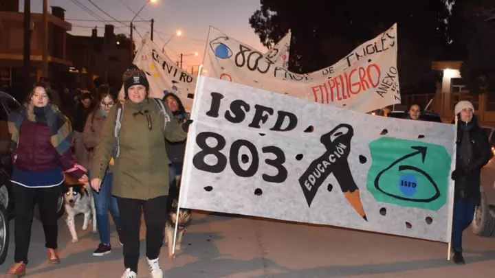 Se llevó a cabo el lunes una nueva marcha de antorchas. Vecinos, docentes y estudiantes de la ciudad realizaron una nueva marcha de antorchas frente al «ajuste» de la educación en Chubut que afecta a ISFDA 805 y ISFD 803, a lo que se le suman los reclamos de la educación en general frente a la situación por la que docentes y estudiantes no pueden volver a las clases.