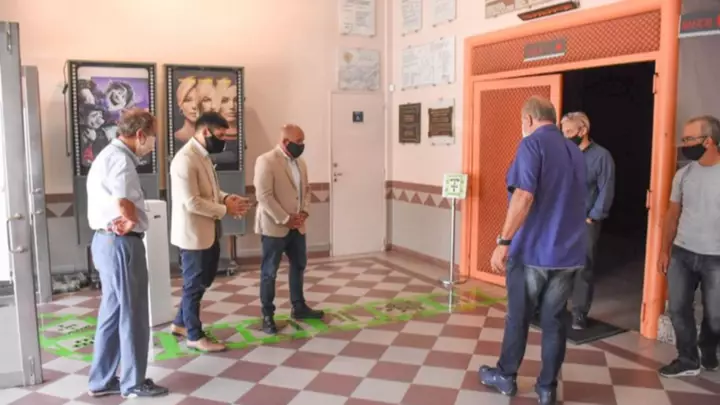El intendente de Puerto Madryn, Gustavo Sastre, recorrió las instalaciones del Cine Teatro Auditórium y supervisó junto a las autoridades de la Sociedad Italiana los nuevos protocolos sanitarios. Allí se verificó el funcionamiento del equipo de desinfección que se utilizará en la sala y el nuevo sistema de venta de entradas. Además, se redujo a la mitad la capacidad de personas que podrán asistir por función y se modificó el trabajo de los acomodadores.
