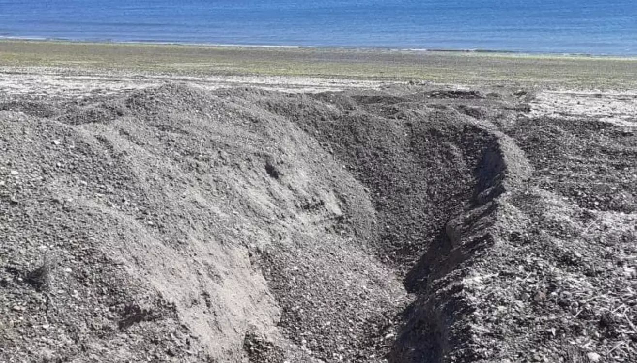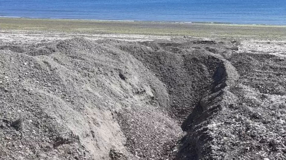 En las últimas horas se conoció que un privado cavó una extensa zanja en Playa Villarino para cortar el camino de vehículos en el sector, como así también demolió un viejo refugio en el lugar, marcado como patrimonio histórico.