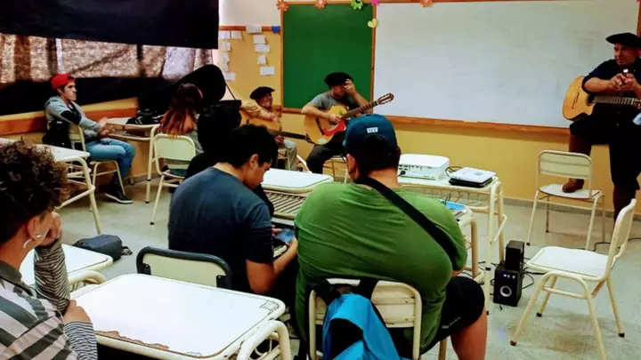 El taller finalizó con una guitarreada y milongas que invitaron a la reflexión de los jóvenes sobre temas de su actualidad.