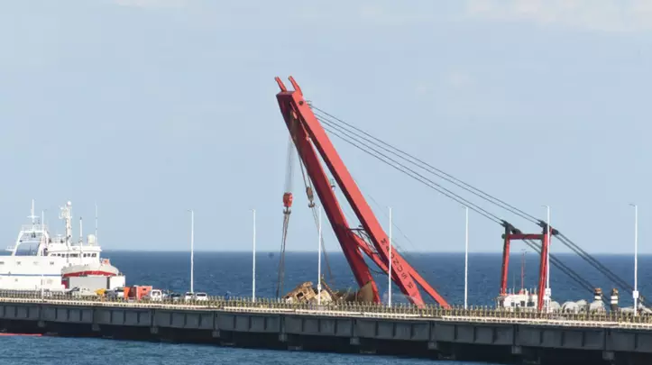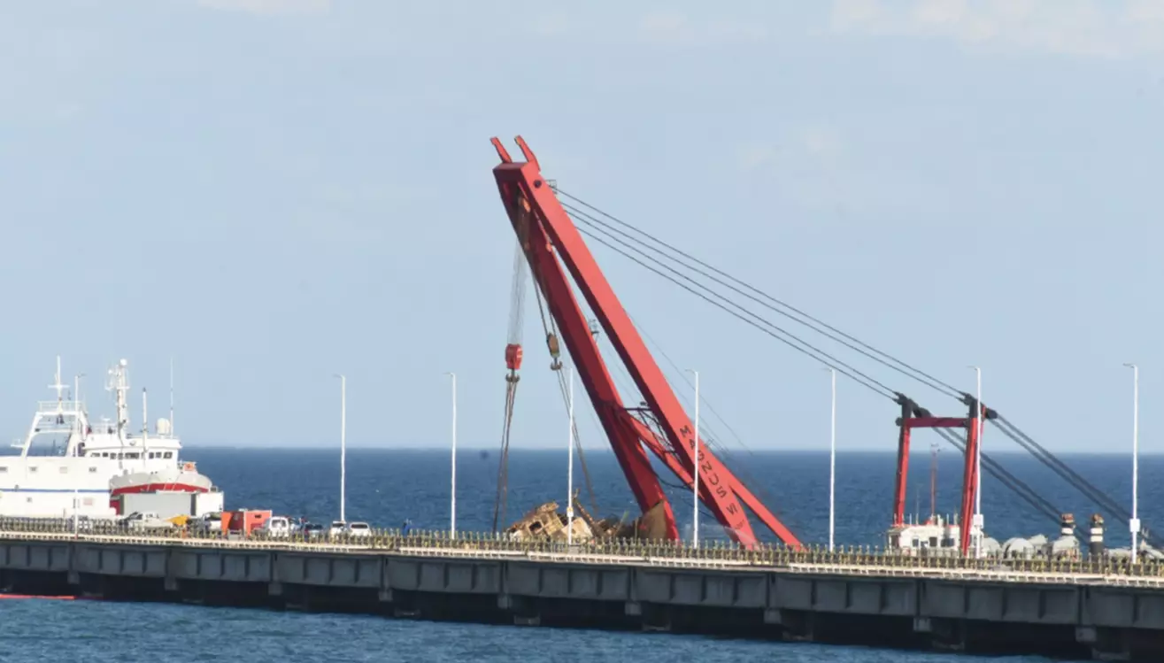 Hace ocho días, llegó a Puerto Madryn la grúa flotante Magnus VI, de la empresa Servimagnus, que es una lancha que cuenta con una capacidad de izado de 400 toneladas y que lleva a cabo el reflote del buque Pescargen IV.