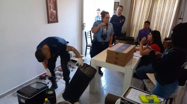 Tras este episodio, la policía realizó ayer un allanamiento en calle Estivariz al 1400, donde se logró el secuestro de varios objetos vinculados al ilícito, entre los que se destacan (03) cajas de vino sin abrir, parlantes de música, una caja de cartón con vainas de cuchillo y utensilios de cocina, un arma de fabricación casera de color gris y un aire comprimido tipo pistola. También se encontraron una máquina de hacer hielo Philco, un taladro, y la suma de $300.000, elementos sustraídos al damnificado.