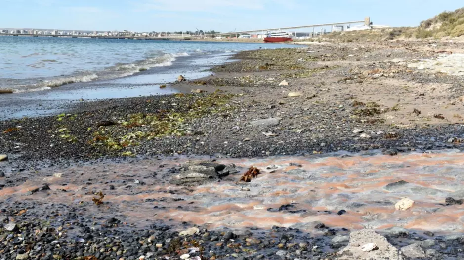 EL CHUBUT se acercó hasta el lugar y constató la veracidad del video: ayer los residuos pesqueros con un color naranja bien pronunciado persistían desembocando en el Golfo Nuevo. Un río color naranja provenía desde la barda costera entre los arbustos, dentro del parque pesquero, pasando por la arena hasta mezclarse con el mar del golfo.
